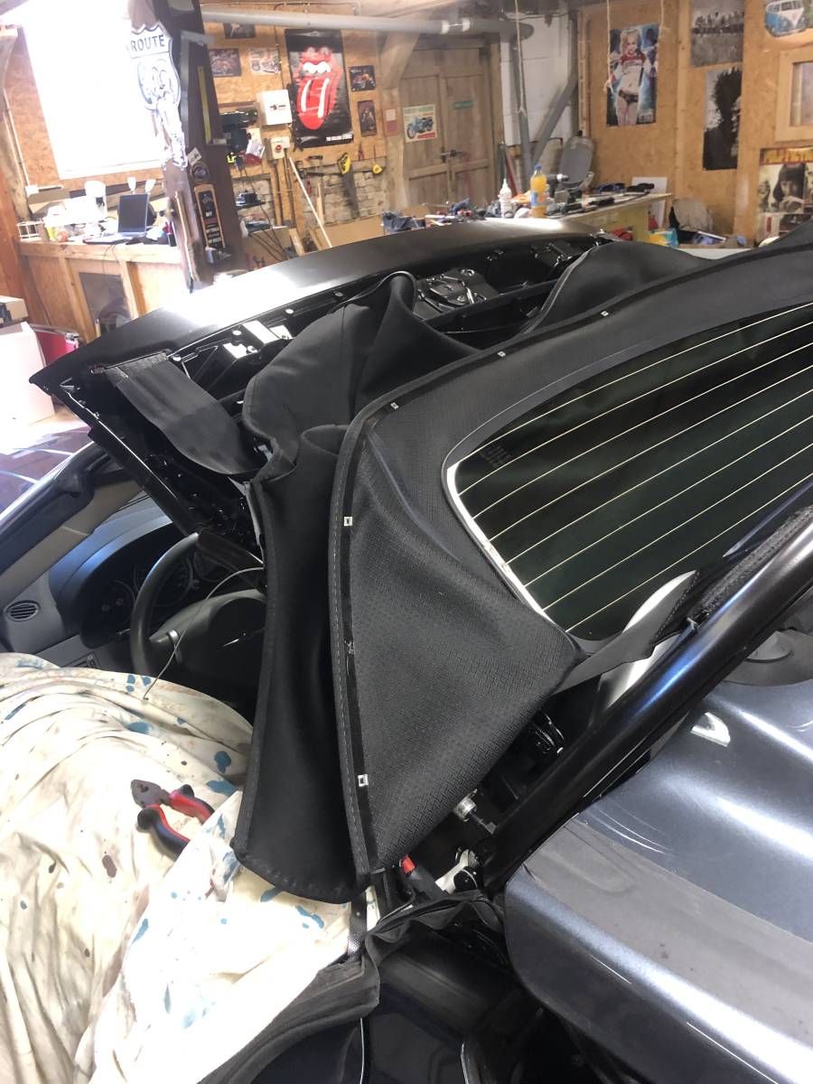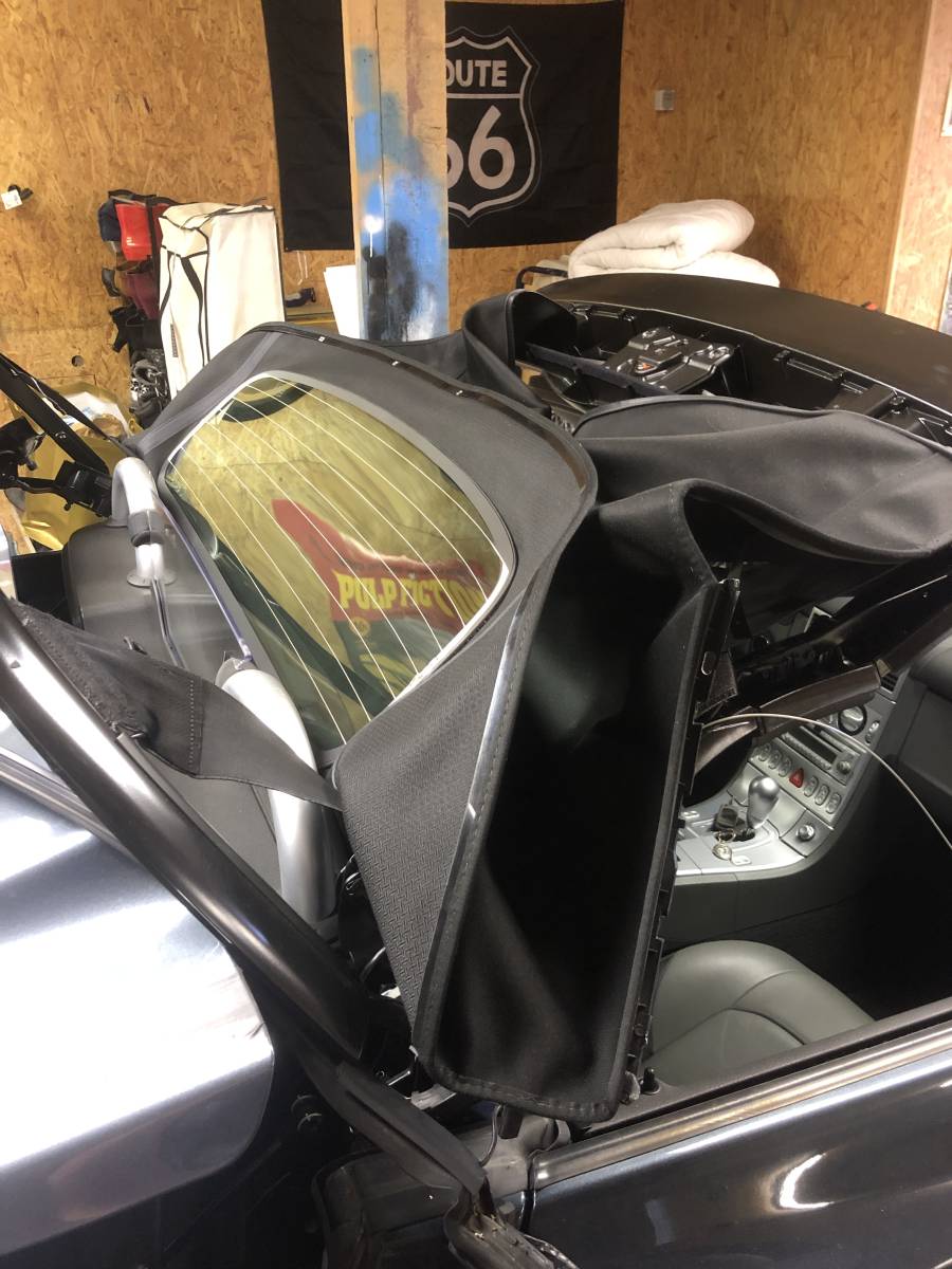 Suite à un décollement de la toile autour de la lunette arrière du au vieillissement qui avec le temps rétracte la toile et fini par faire céder le collage .