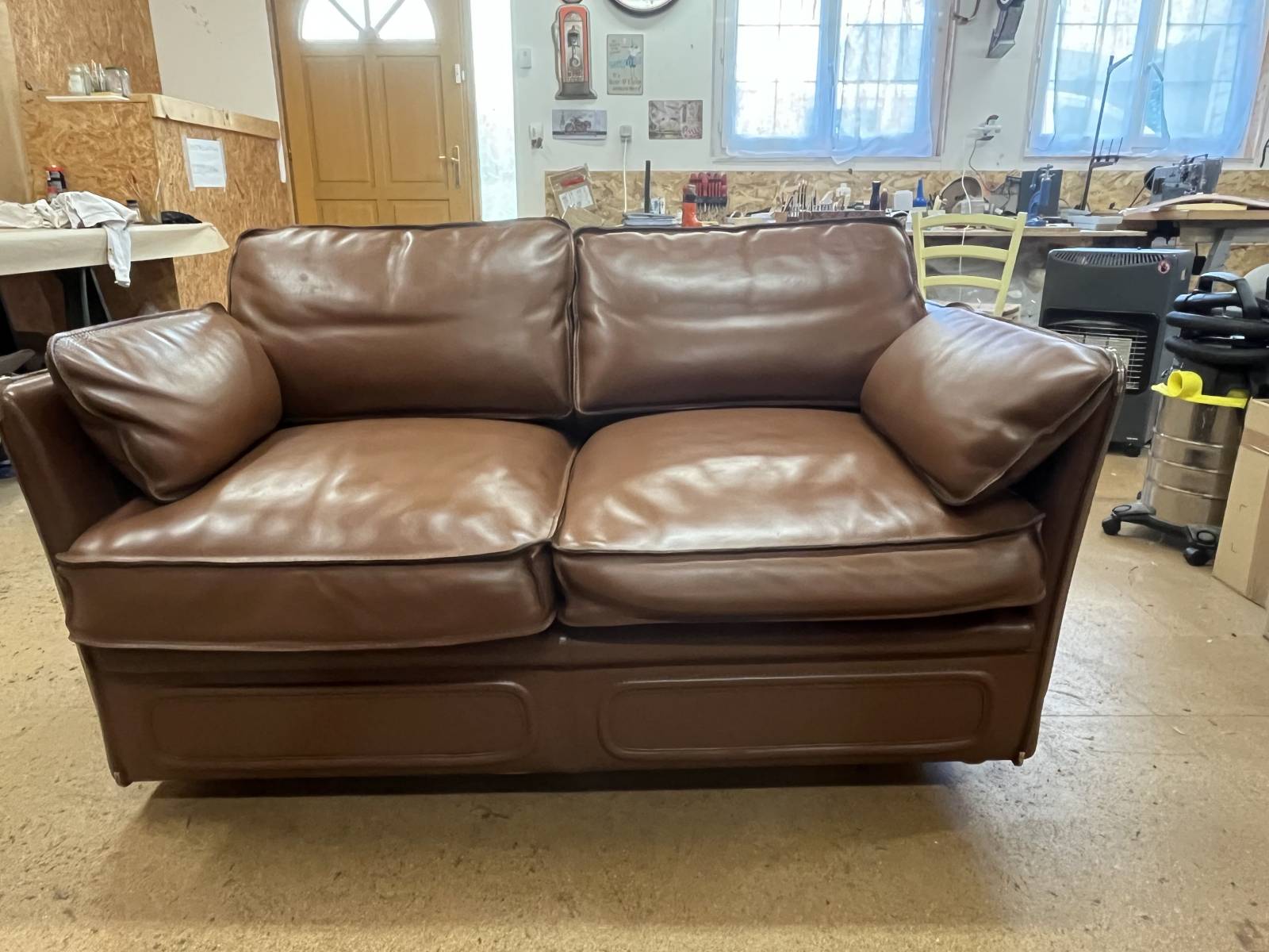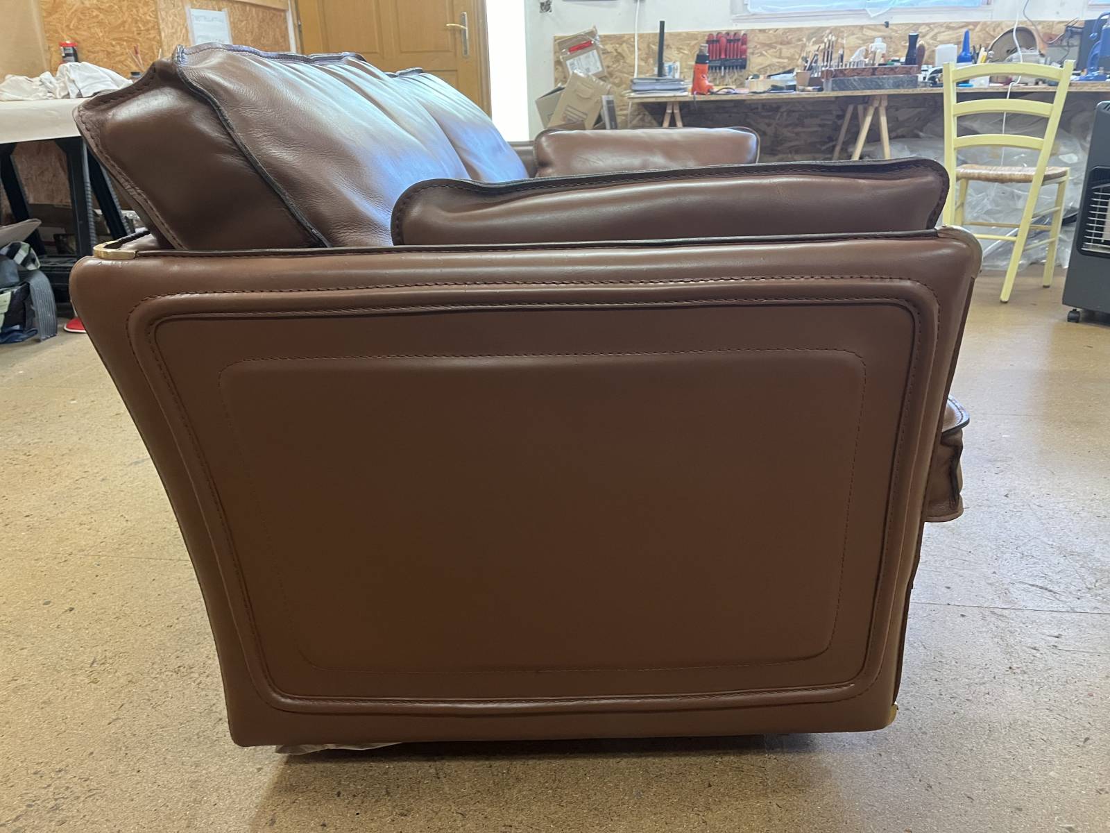 Sellerie de Caux vous présente son nouveau projet de rénovation d'un canapé cuir avec coloration pour un de ses clients situé au HAVRE.