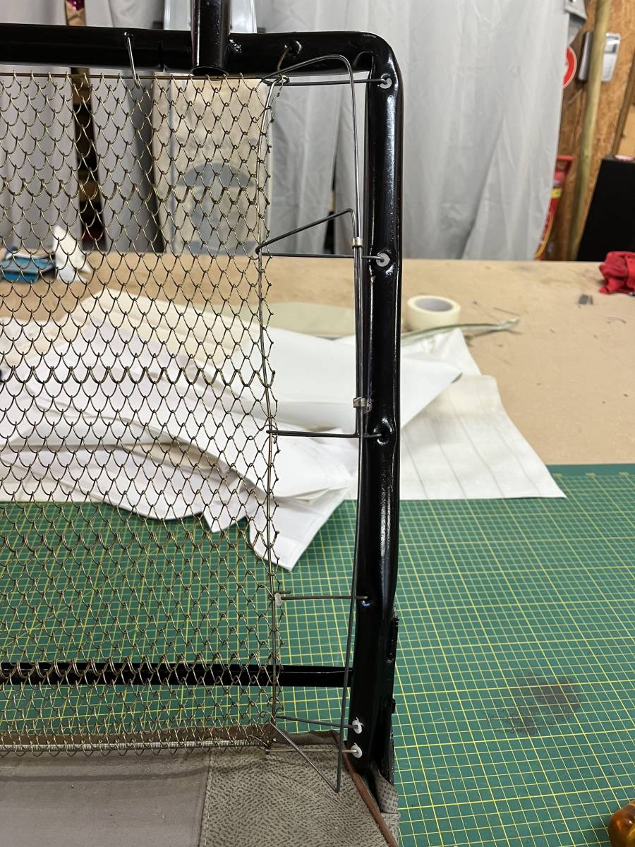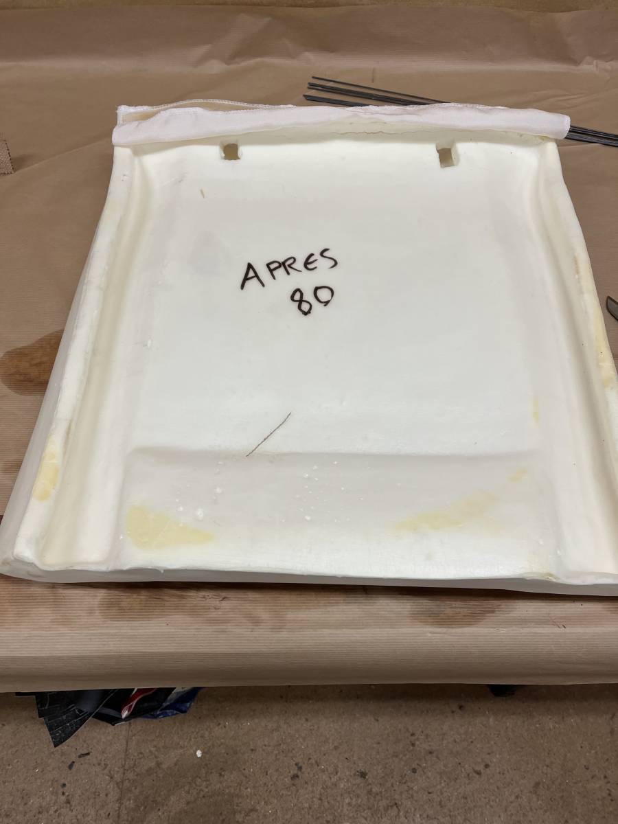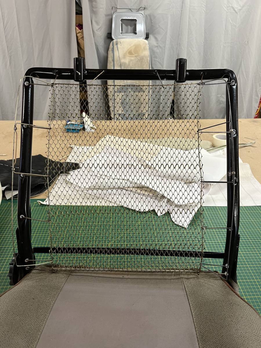 Les parties arrières des sièges avant étant eux avec des accrocs, l'atelier Sellerie de Caux à proposé de les refaire avec un simili cuir d'une couleur grise pouvant s'accordé avec celui-d'origine.