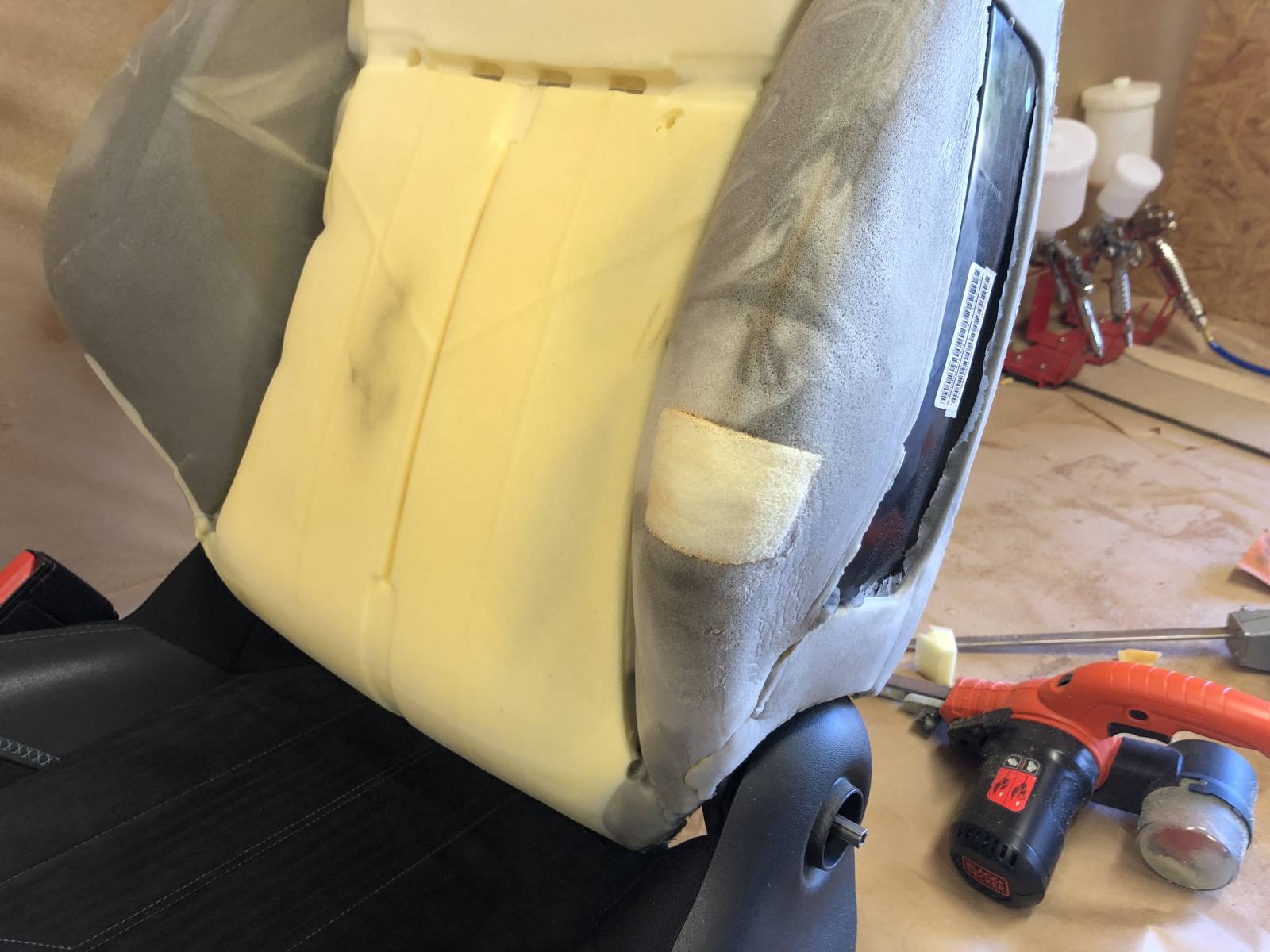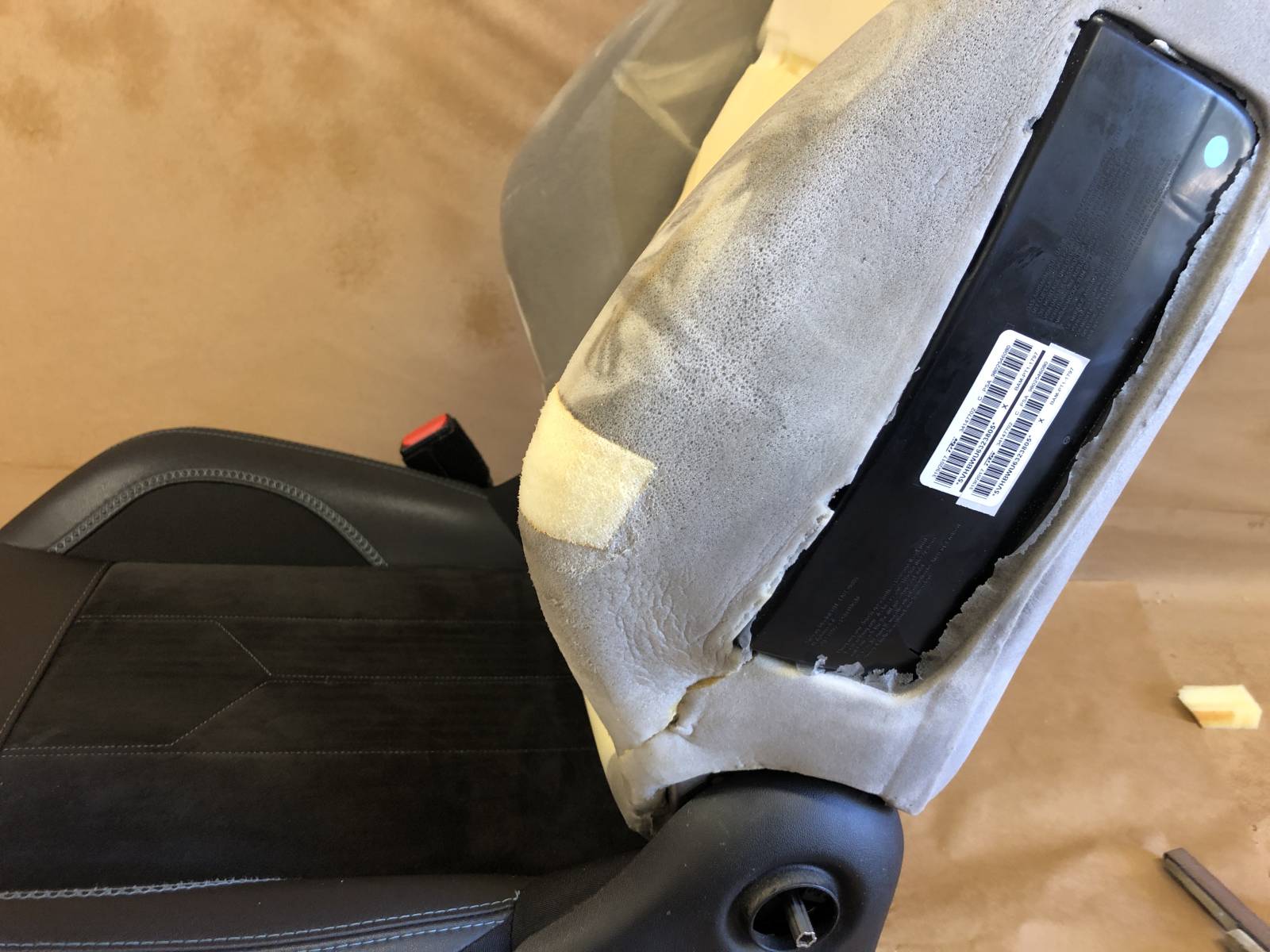 Sellerie de Caux vous présente la réparation d'un siège de 3008 avec air bag en simili-cuir et greffe de mousse pour un professionnel d'YVETOT en Normandie.
