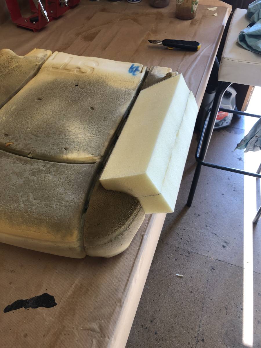 La mousse du coté gauche ainsi que le tissu et une partie du simili cuir ont du être refait et changé.